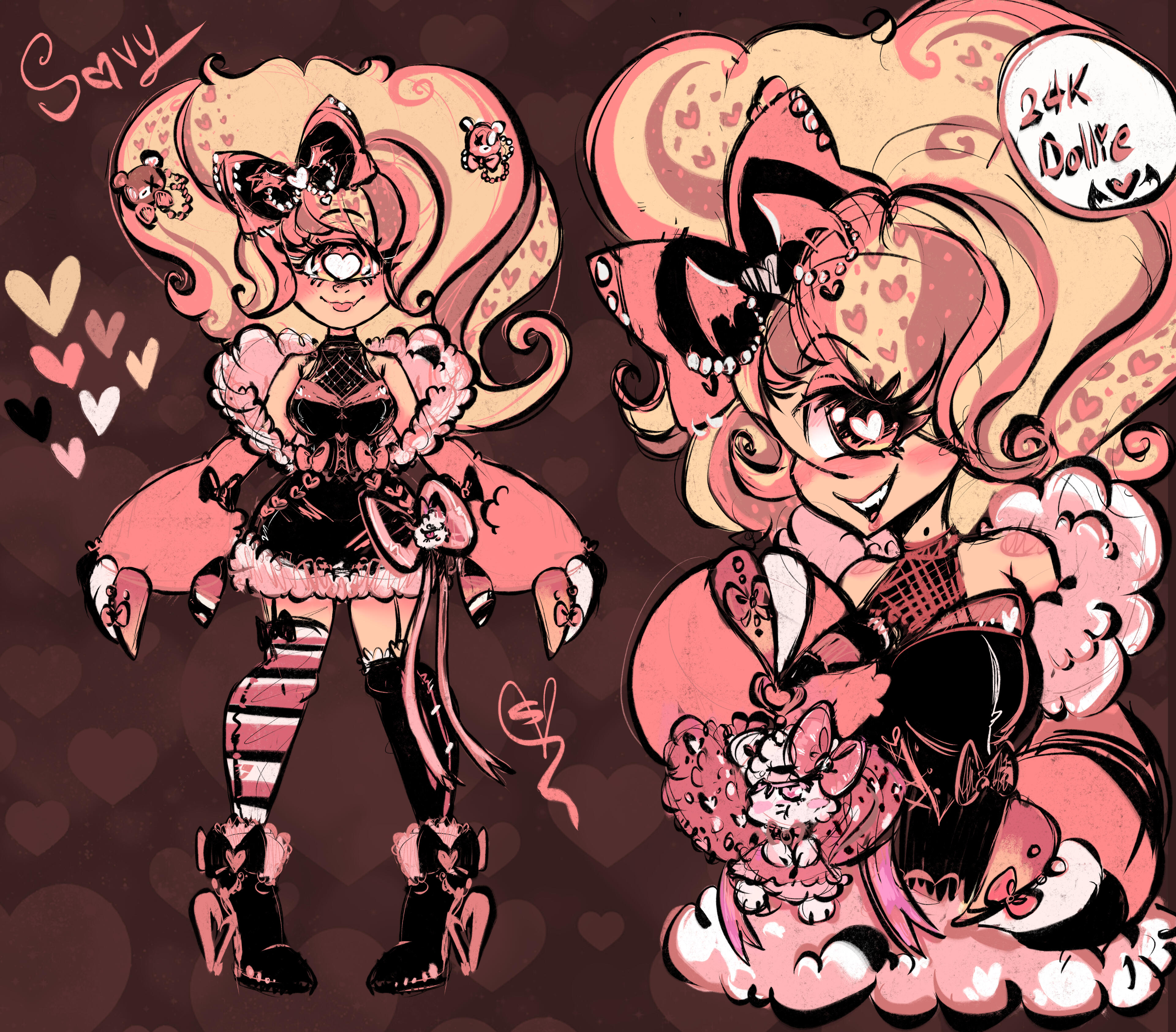 ❤︎ I have two beloved mascots! Bebe, the gyaru vampire x imp girlie and Dollie, a cutesy gyaru cybear! Bebe is also one of my sonas think of her and Savy (me) like a mirror.❤︎
